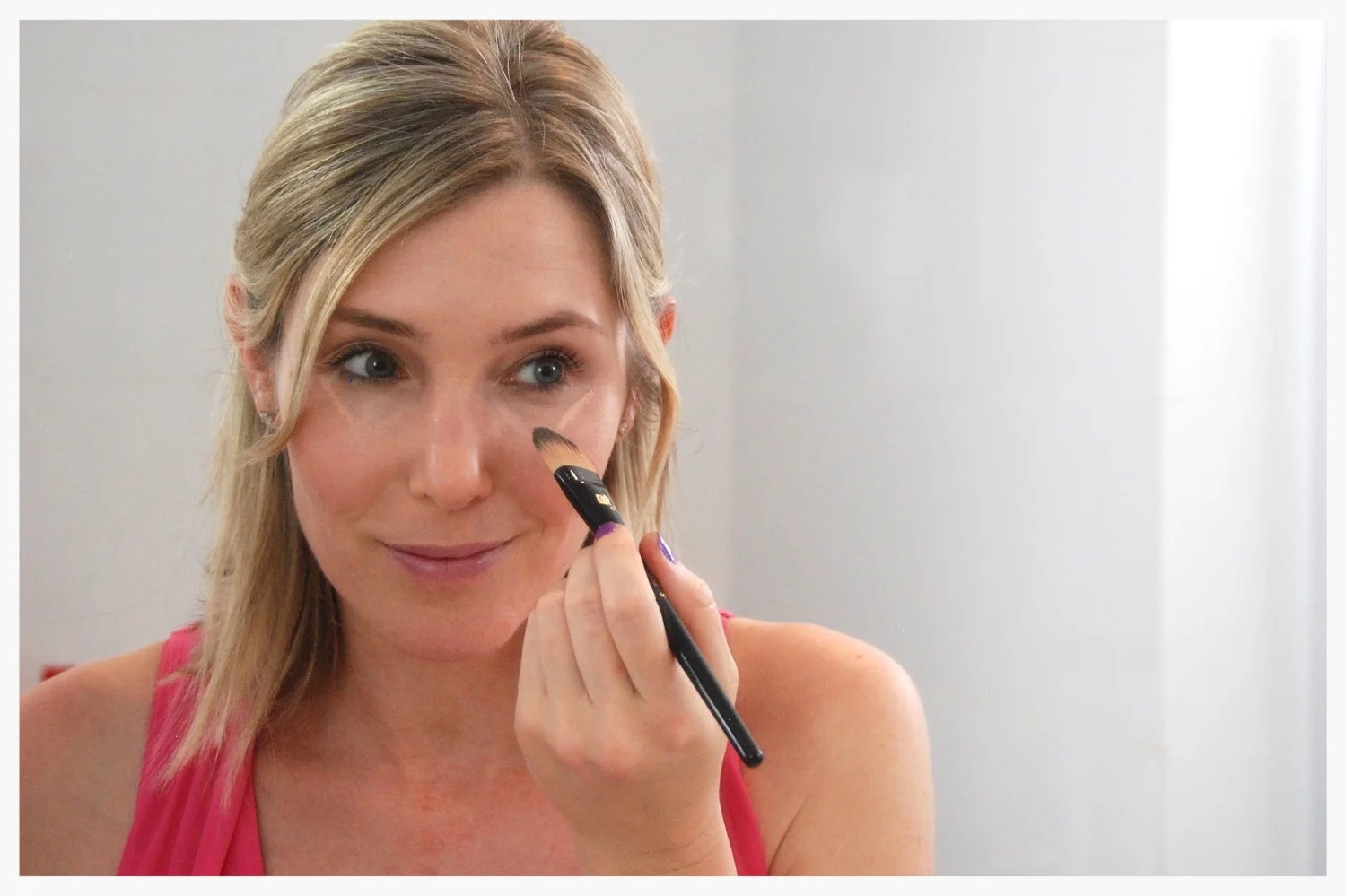1. With the tip of makeup brush (or a concealer brush if you have it), apply the concealer in a V-shape below the eyes along the dark areas you wish to cover